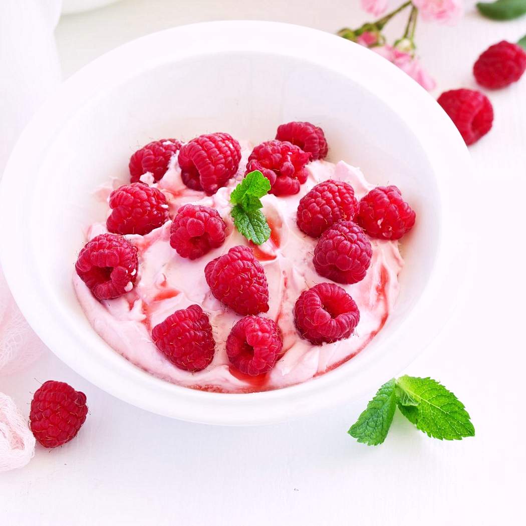 - Édesített tejszínhab és friss málna díszítéshez